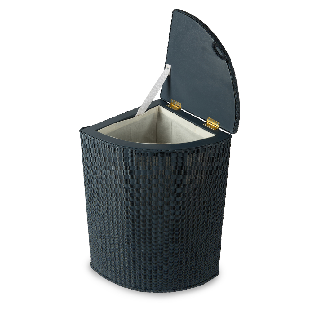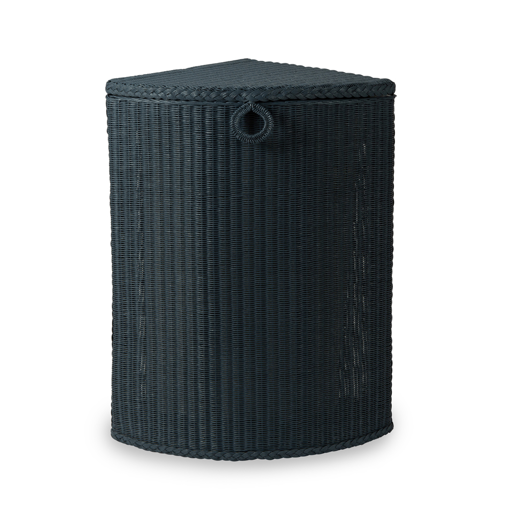 The Lloyd Loom corner linen basket a design in continuous production from the beginning. Can be sited in any situation due to its versatile shape. Our linen baskets have the signature fiber bound ring handle.
